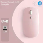 • El mouse inalámbrico de modo dual realiza el cambio libremente entre dos dispositivos con un mouse solo simplemente cambiando de cambio. Se puede conectar a un dispositivo a través de Bluetooth y a otro dispositivo a través de un receptor USB de 2.4 GHz. Nota: el modo Bluetooth y el modo 2.4G no se pueden utilizar al mismo tiempo.