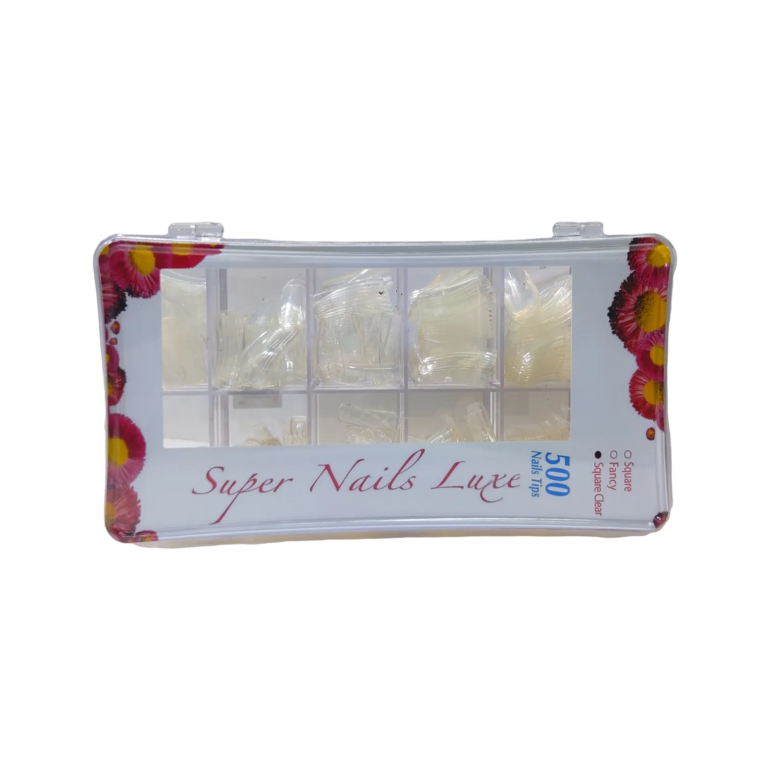 La caja de Uñas Super Nail Clear es una caja de uñas postizas de la marca Super Nail que contiene uñas con una apariencia clara y transparente. Estas uñas se pueden cortar y limar para adaptarse a cualquier tamaño y forma de uñas naturales y se pueden pintar y decorar como cualquier otra uña. La caja generalmente contiene múltiples tamaños de uñas, lo que permite seleccionar las uñas que mejor se ajusten a la forma y tamaño de las uñas naturales de cada persona. Además, la caja de Uñas Super Nail Clear se puede usar para almacenar y transportar las uñas postizas de manera segura y organizada.